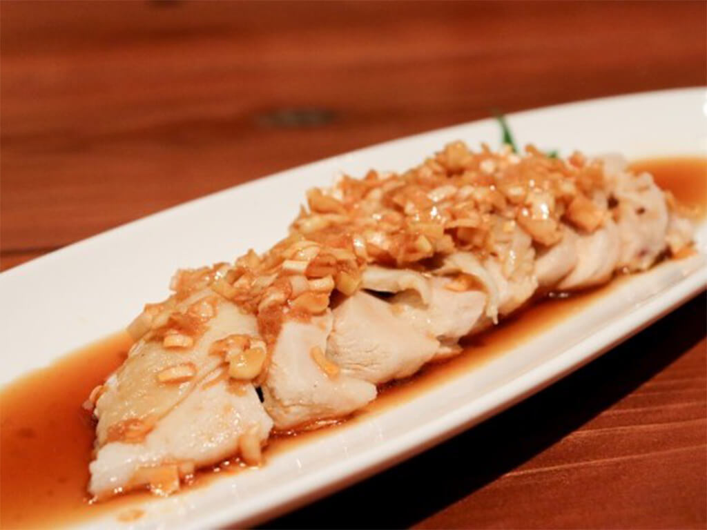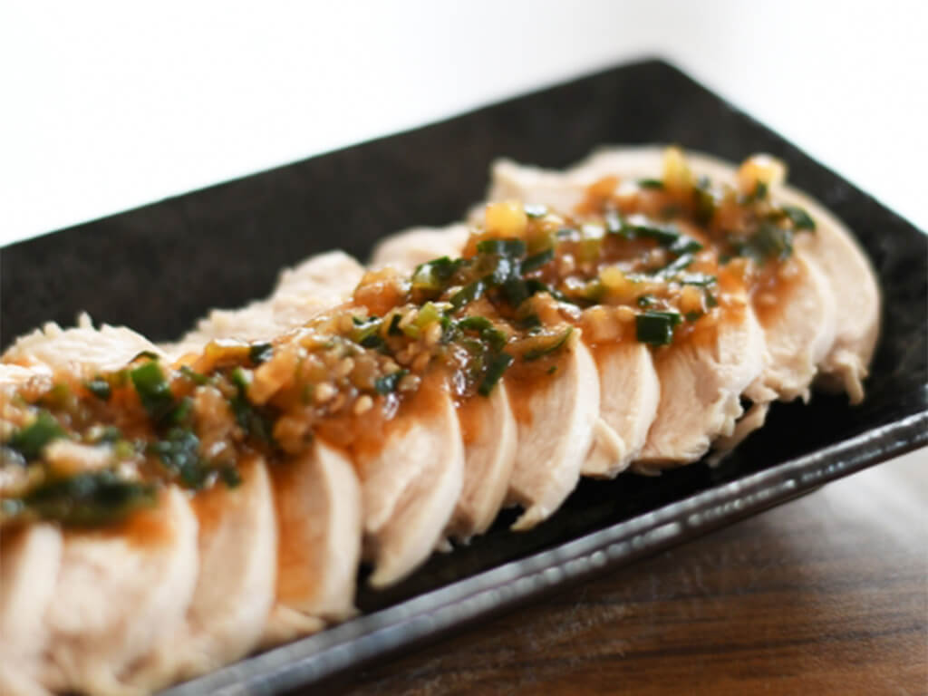 しっとりとしたむね肉に、ピリッと辛いタレがよく合います。ご飯はもちろん、お酒にも相性抜群な一品。