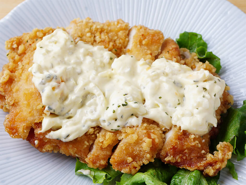 鶏むね肉の人気料理と言えばコレ。衣をつけてカラッと揚げた後、たっぷりの甘酢やタルタルソースをからめてどうぞ。揚げ過ぎ注意。