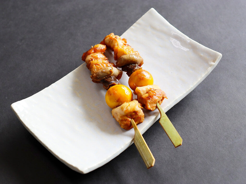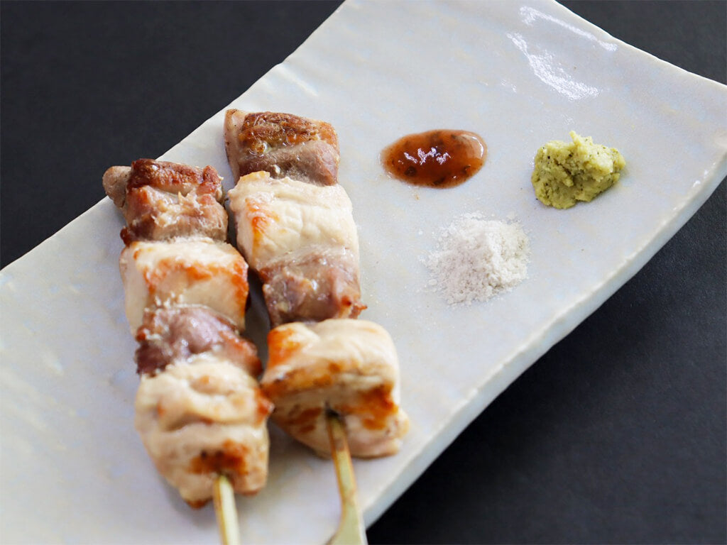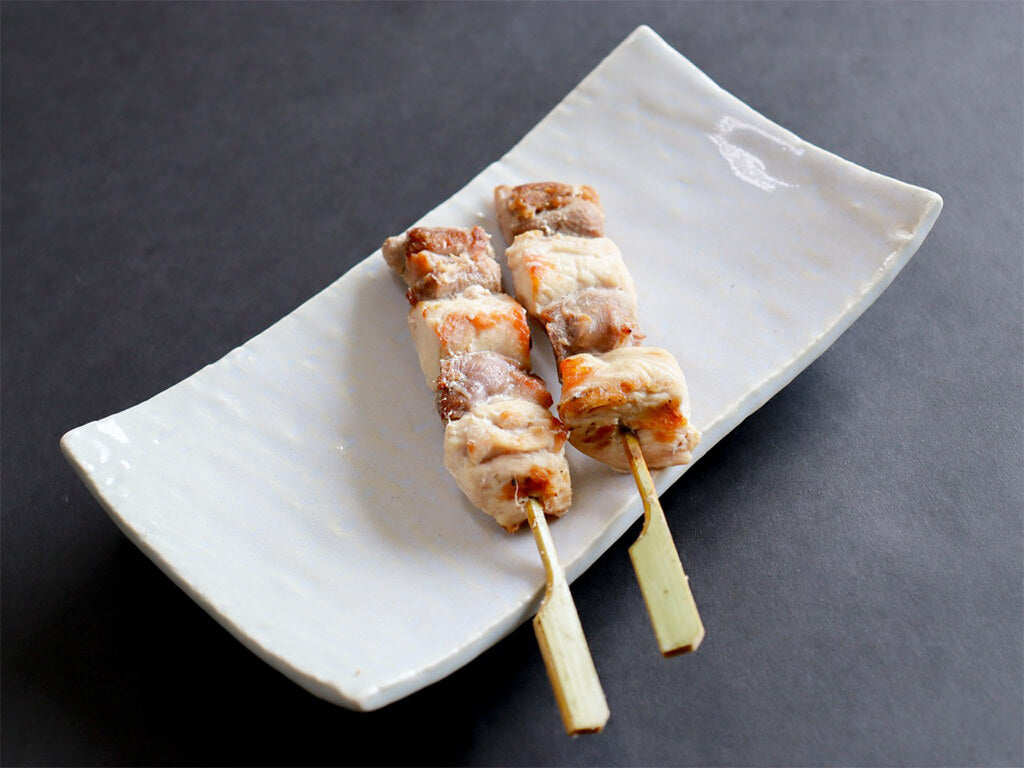 比内地鶏の焼鳥を最初に味わうならコレ。もも肉とむね肉が交互に串打ちされていて、お肉の旨みをダイレクトに感じられます。
