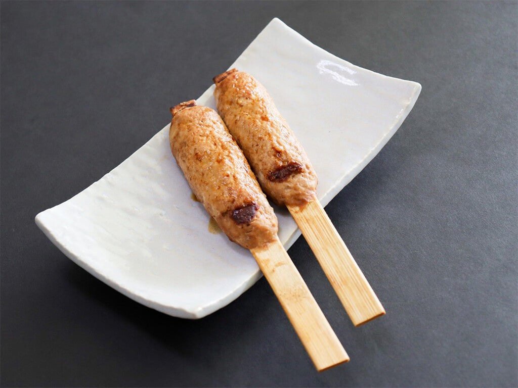 味噌が決め手の食べ応え抜群の1本。ミンチにしても感じる比内地鶏の旨みと、オリジナルのたれがマッチしています。温泉卵を加えてどうぞ。