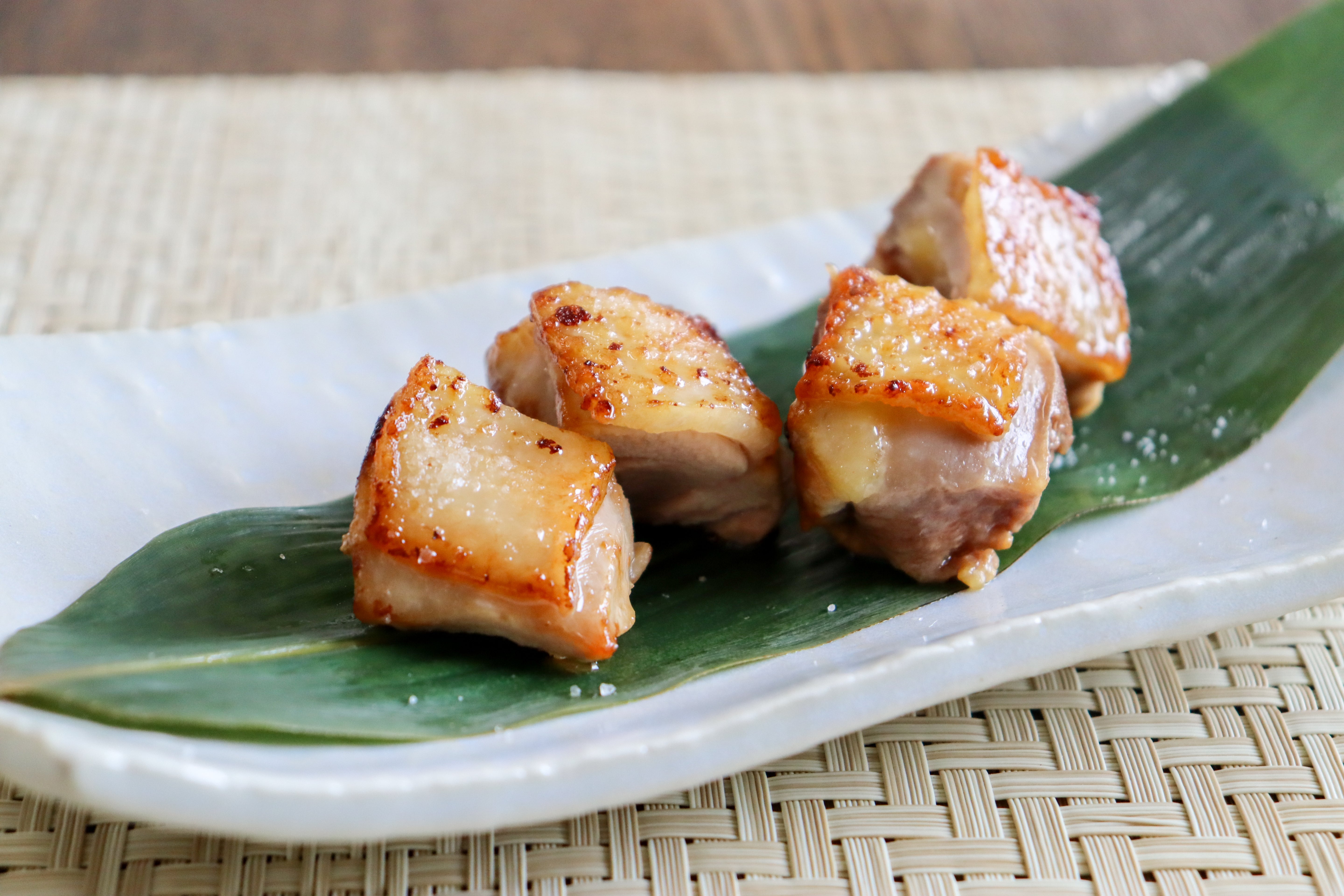 皮目をパリッときつね色に焼きあげて塩胡椒、ポン酢でお召し上がりください。