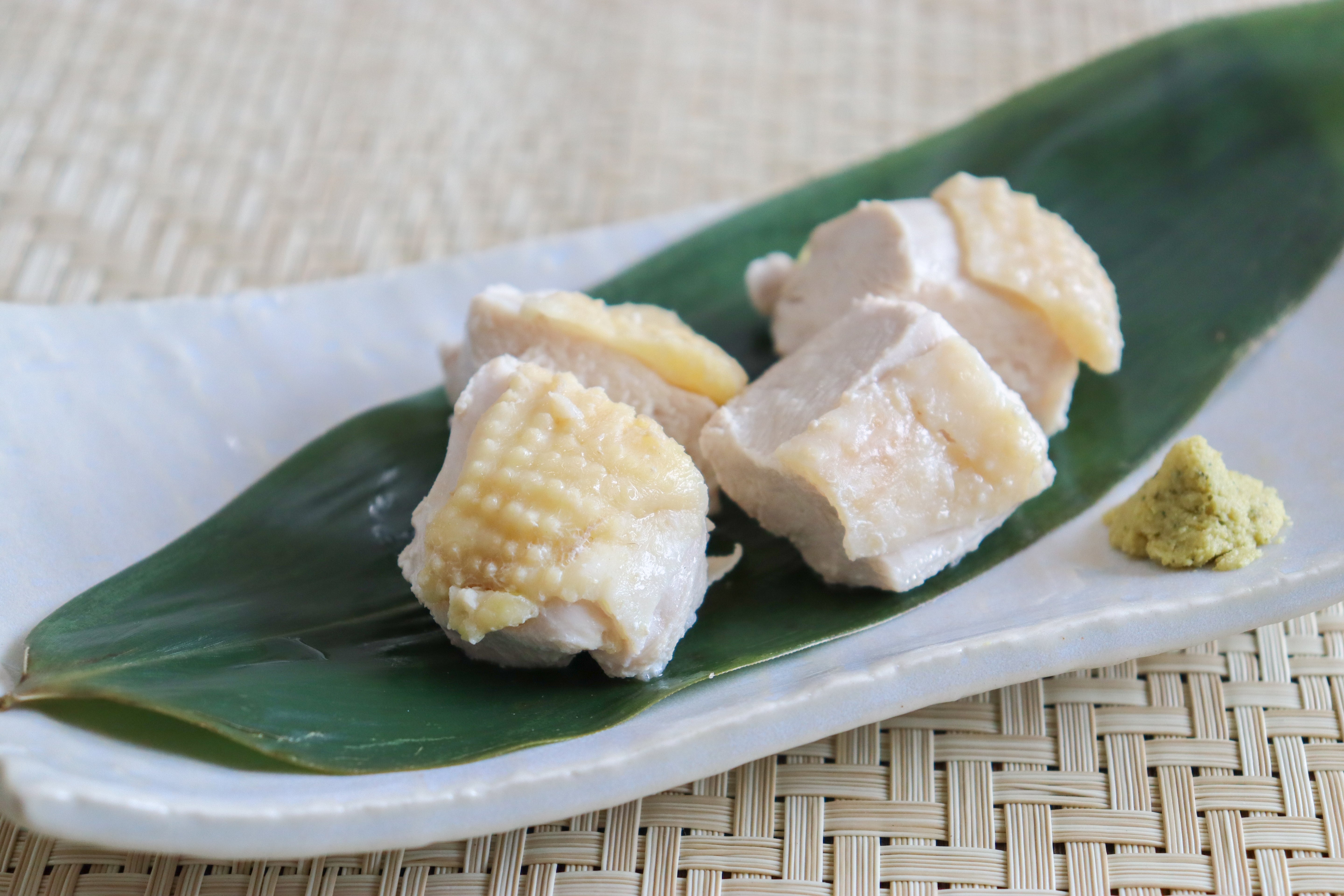 中に火が通るまでボイルし、ポン酢やしょうゆ、わさびなどをつけてお召し上がりください。